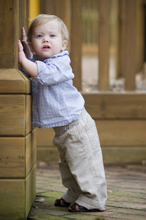 Ty is almost 19 months!!! Walking, running, attempting to jump :)...he's actually getting hard to keep up with now! He LOVES to eat(just like his Daddy :). He LOVES other kids...he likes to pat their heads-funniest thing we've seen! He is talking like I've never heard an 18 month old talk! Funny, but we've had someone actually tell us he needs to be tested for gifted! (He's not even in school yet! haha) We bought him a potty last weekend and he pooped in it that same day!!! BUT, I'm trying to not get ahead of myself...there was a list on babycenter.com that tells you when your child is ready to potty train and he's got about half the list. I'm just letting him get comfortable with it. He loves to sit on it! What a big boy now!